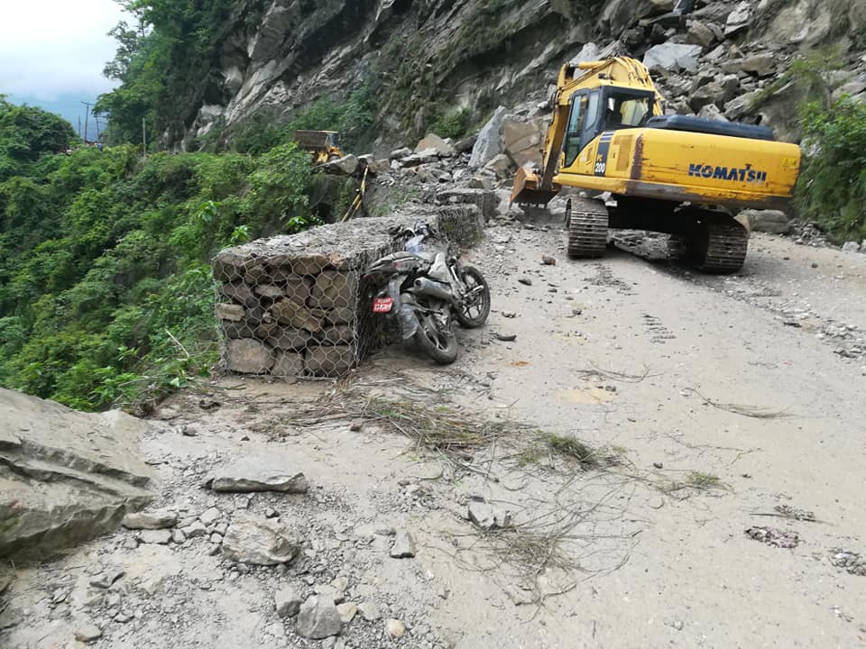वुटबल पाल्पा सडक अझै अबरुद्ध पहिरो हटाउने काम जारी