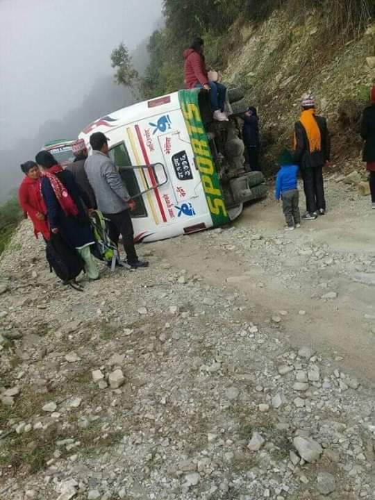 कास्कीको पोखरा देखि सल्यान जादै गरेको बस दुर्घटना हुँदा १० जना घाइत